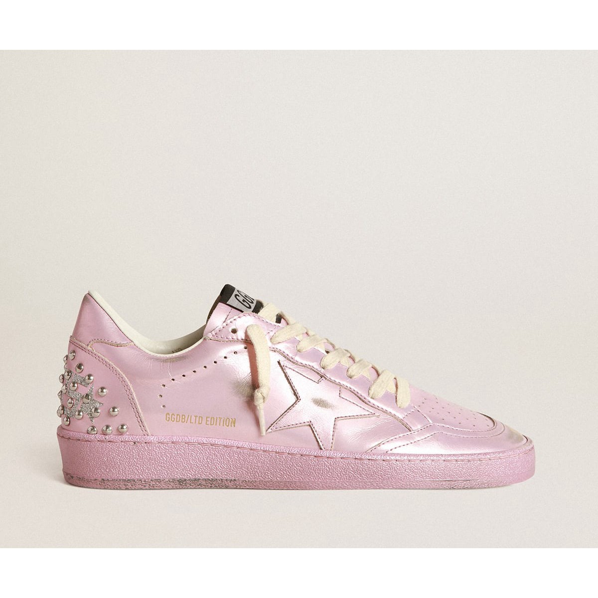 Scarpe Ginnastica a stella con palla d’oca doratura laboratorio in pelle laminata rosa con borchie GWF00117.F003542.10344
