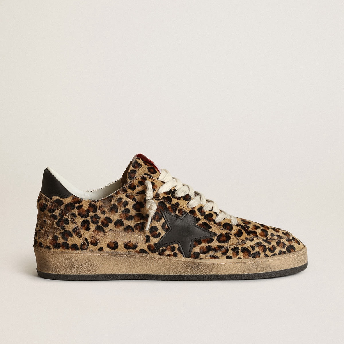 Scarpe Ginnastica a stelle con palla d’oca dorate con stella della pelle di pony per leopardo e tacco di cuoio nero GWF00117.F002599.10920