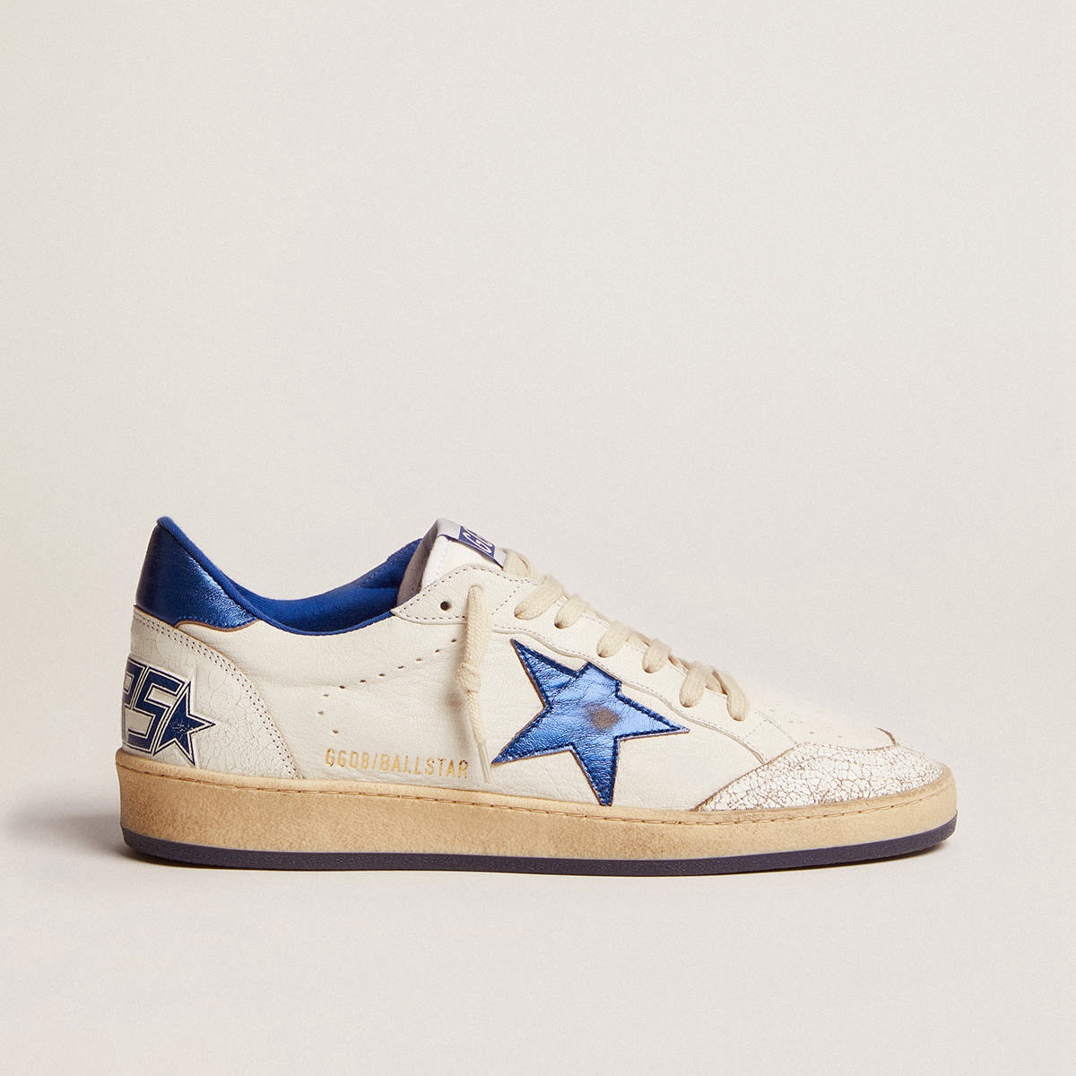 Scarpe Ginnastica a stelle con palla d’oca doratura in pelle bianca nappa con stella in pelle laminato azzurro e tavola tallone GMF00117.F002198.10327