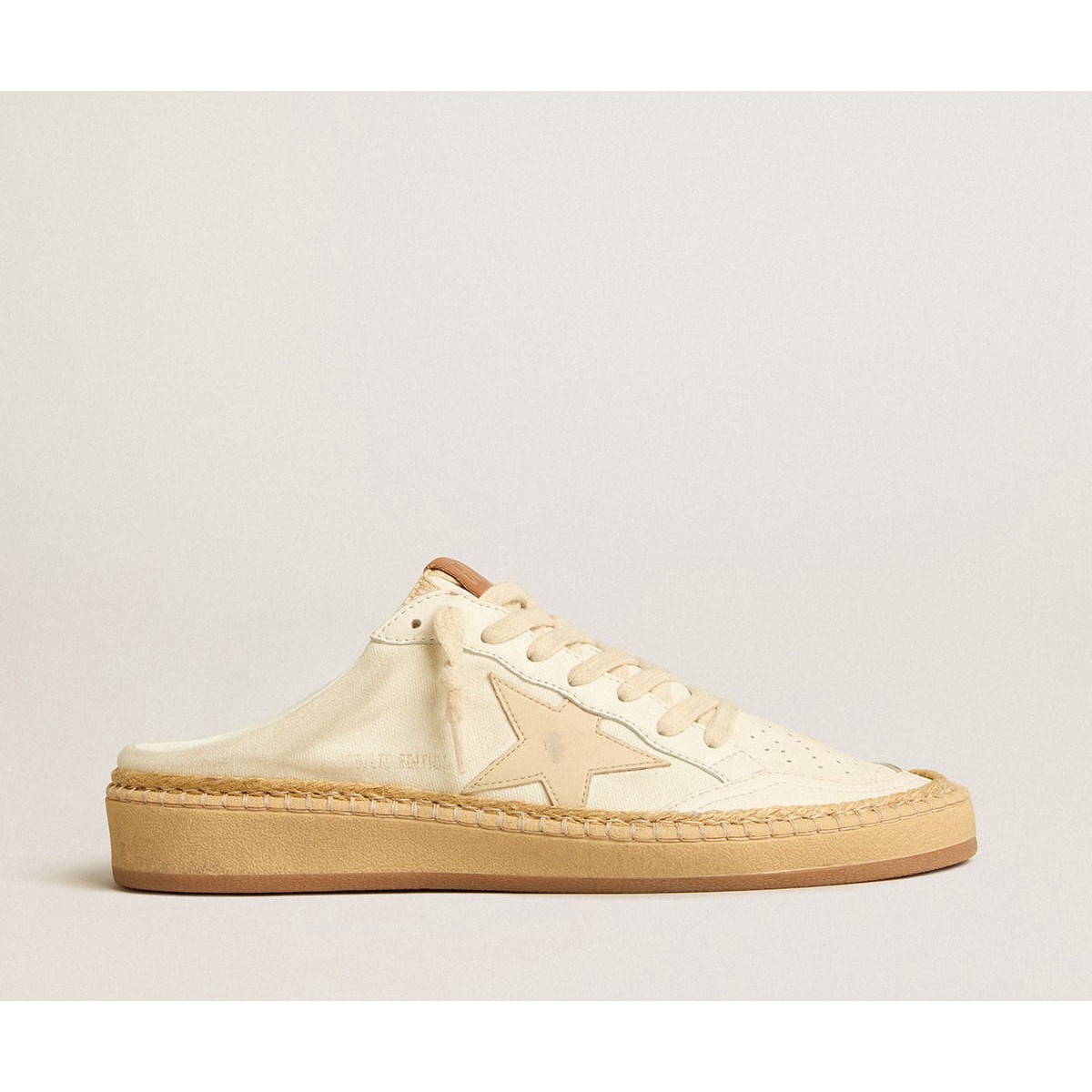 Scarpe Ginnastica a stelle con palla d’oca dorate Sabots Ltd con stella in pelle beige e rifinitura rafia GWF00436.F004890.11562