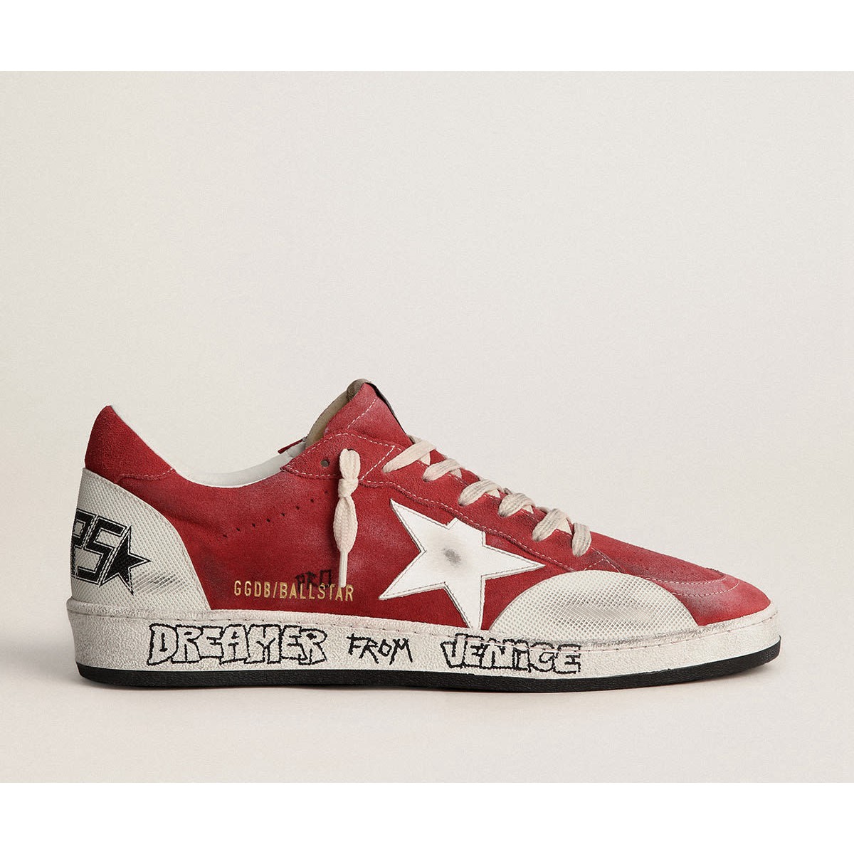 Scarpe Ginnastica pro star della palla d’oca d’oro in pelle scamosciata rossa con inserti in gomma bianca knurled GWF00389.F004012.40375