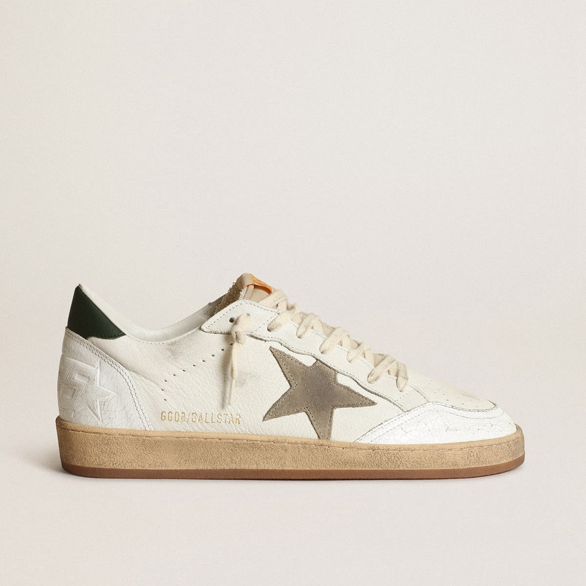 Scarpe Ginnastica a stelle con palla d’oca doratura in pelle bianca nappa con stella in pelle scamosciata grigio-grigio e tacco di pelle verde scuro GMF00117.F003435.11207