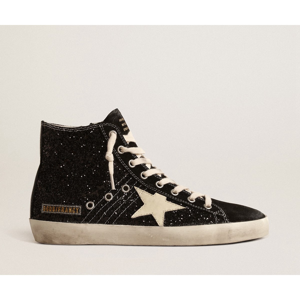 Golden Goose Francy Scarpe Ginnastica Penstar Ltd in glitter con stella d’avorio e tab tallone nero gwf00113.f004558.90232