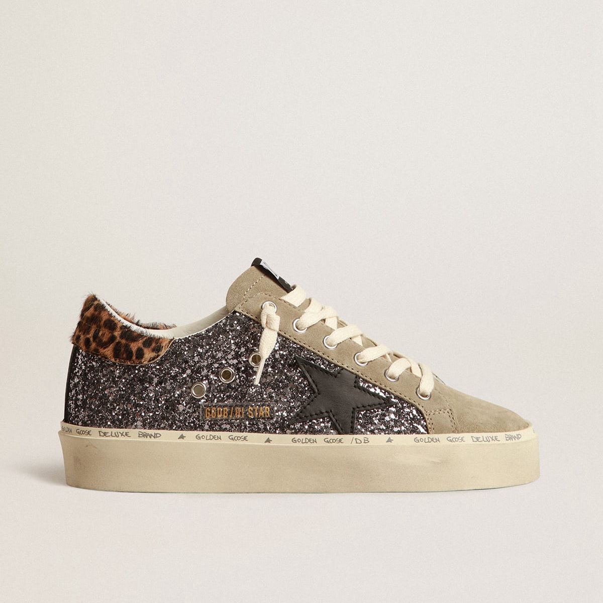 Golden Goose Hi Star in scintillio grigio scuro con una stella in pelle nera GWF00118.F004067.82140