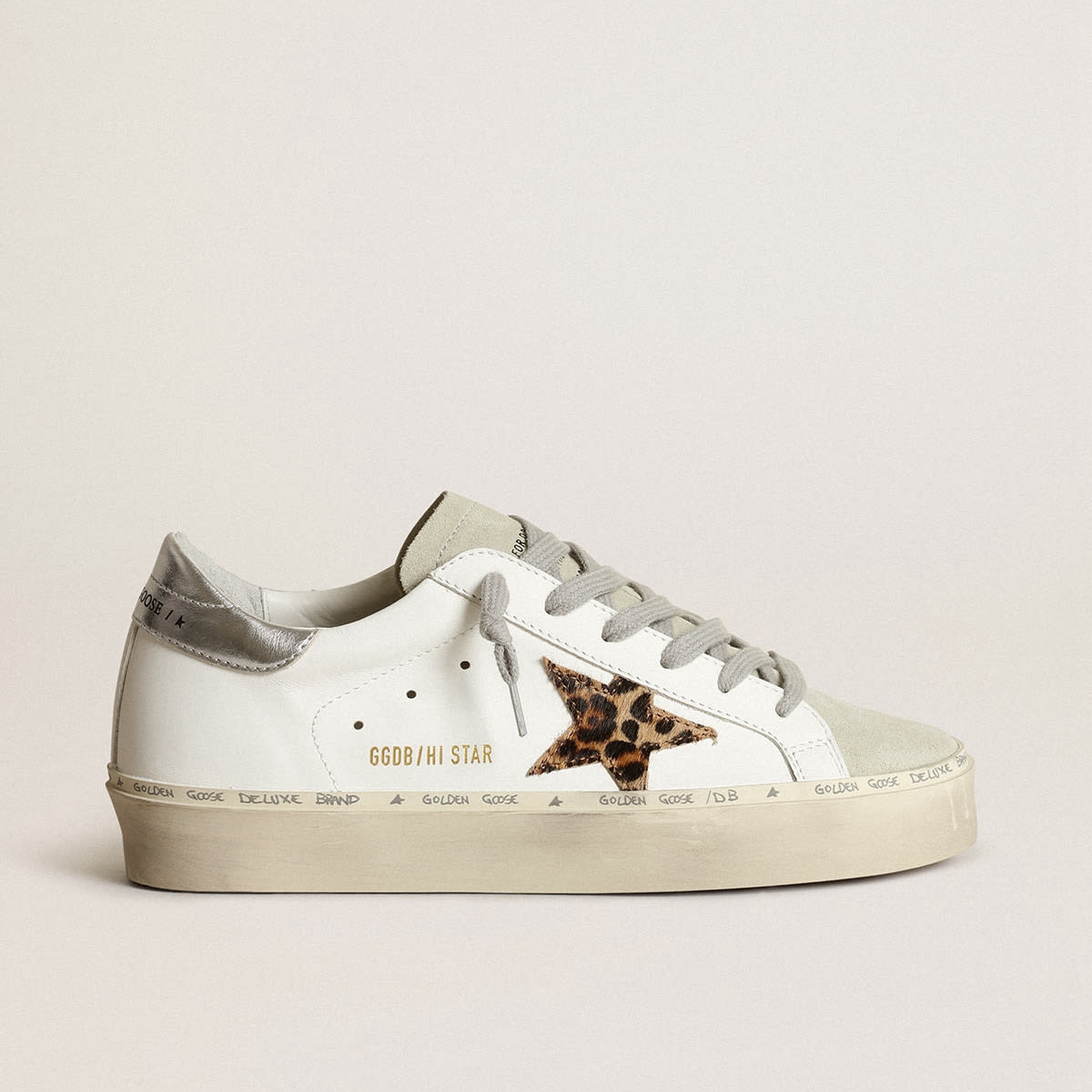 Scarpe Ginnastica a stella d’oca d’oro con star della pelle di pony con stampa leoparda e tacco metallizzato in pelle metallizzata GWF00118.F003386.10675