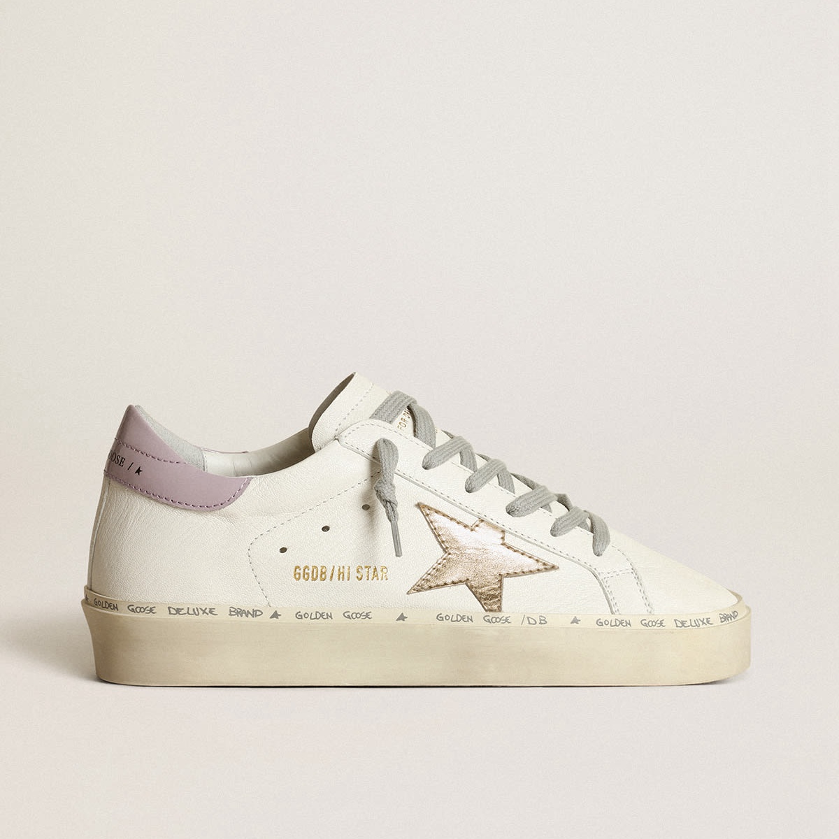 Golden Goose White Hi Star con una stella d’oro e tavolo Lilac Naplak GWF00118.F003389.11236