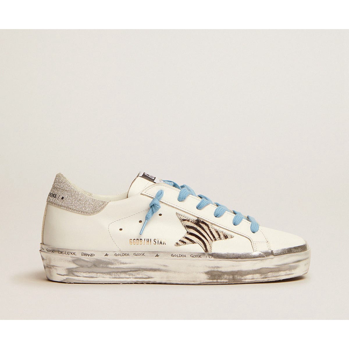 Scarpe Ginnastica a stella d’oca d’oro con star della pelle di pony con stampa zebra e tab di tallone glitter gwf00118.f001689.10668