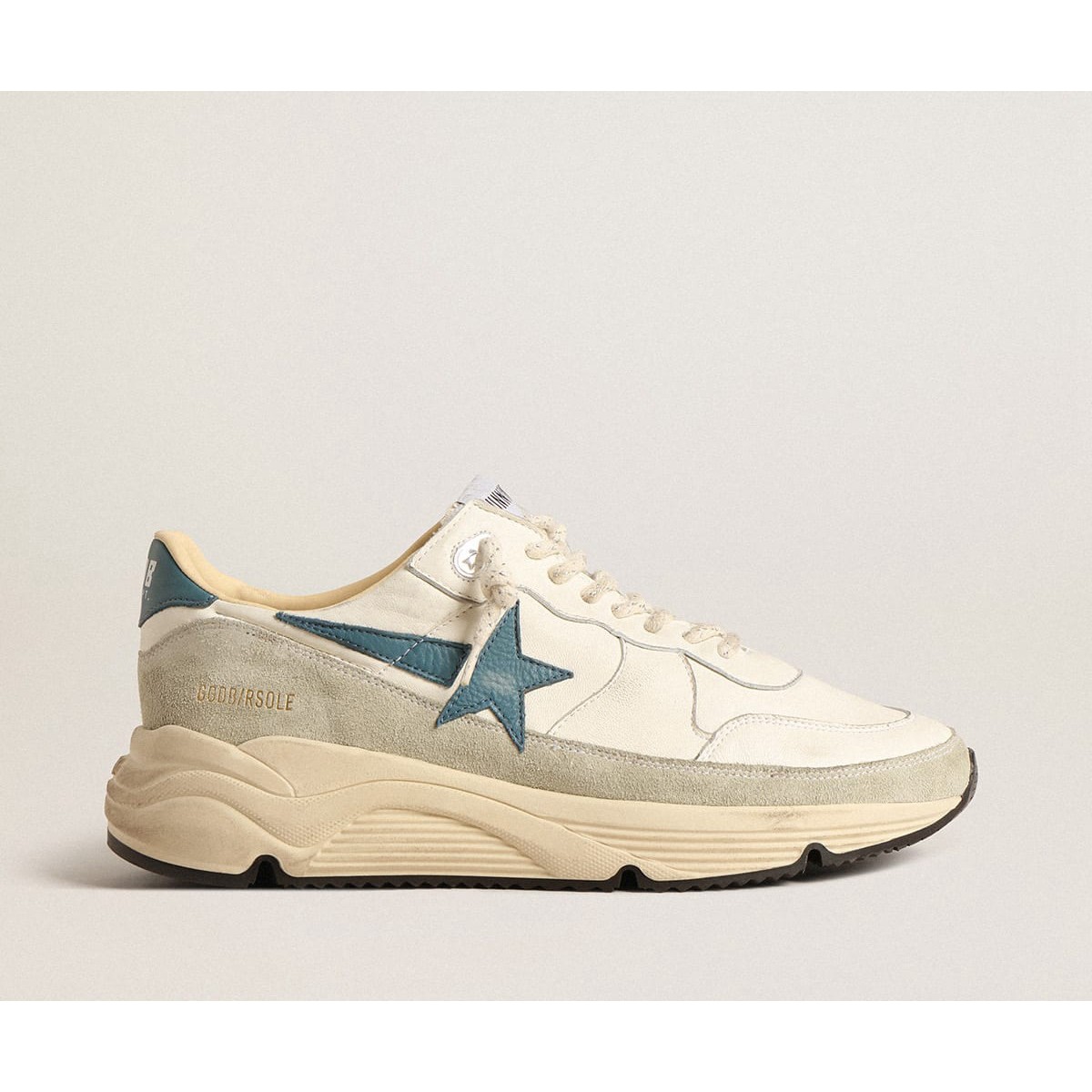 Golden Goose Running Scarpe Ginnastica Sole in Nappa con stella in pelle blu e inserto in pelle scamosciata GMF00350.F004595.11512
