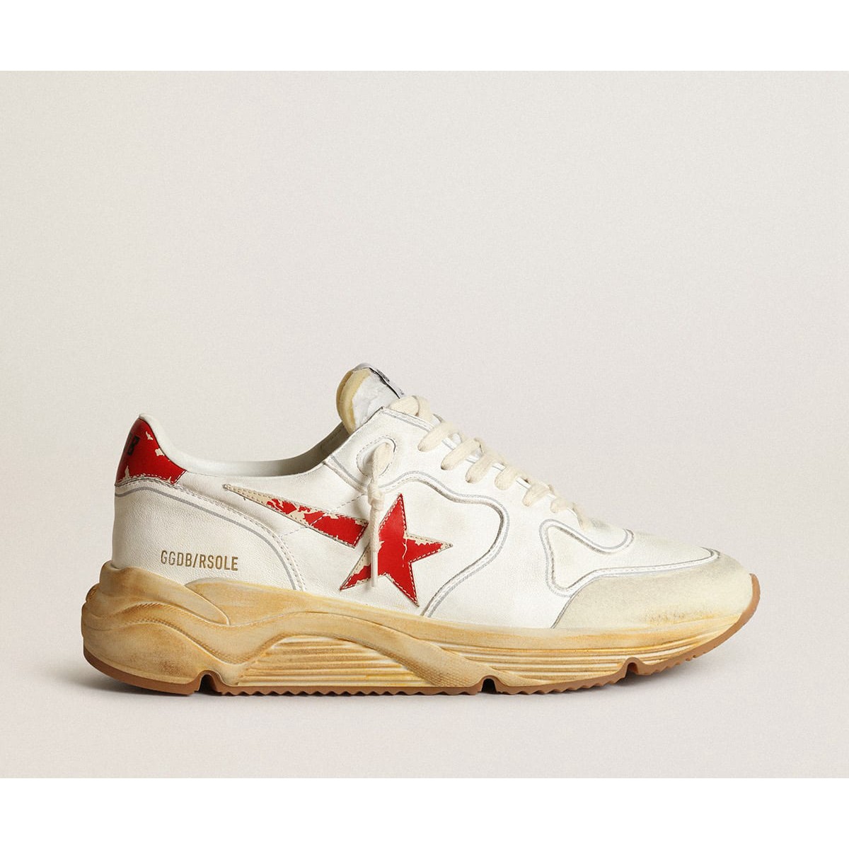 Golden Goose Scarpe Ginnastica Sole con stella in pelle e scheda tallone con stampa rossa GMF00126.F003460.10575