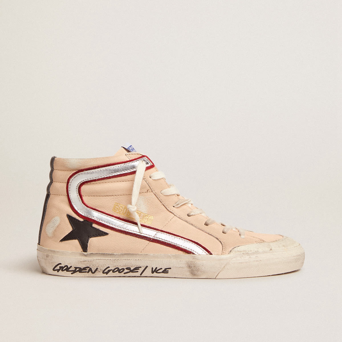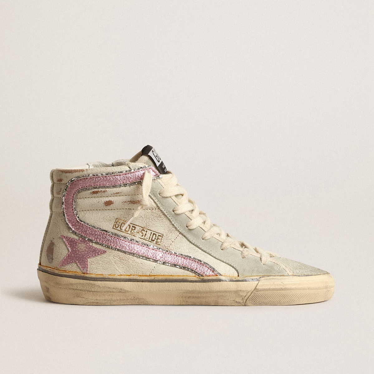 Golden Goose Slide Ltd in beige con stella in pelle metallica rosa e flash GWF00115.F004053.82137