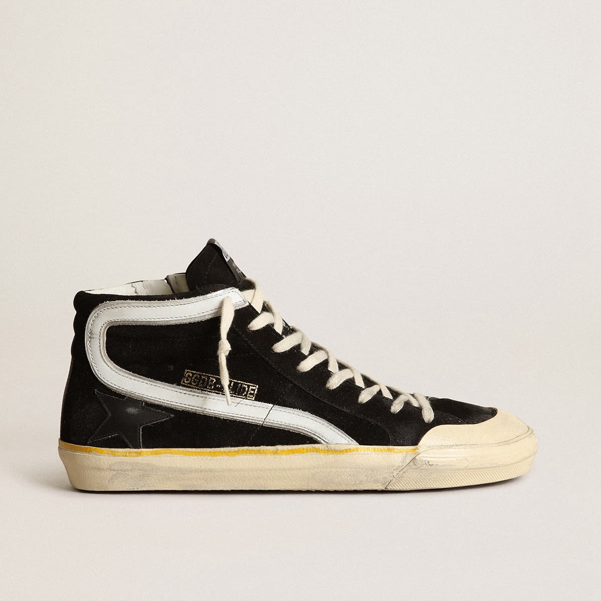 Scarpe Ginnastica Penstar Slide Golden in pelle scamosciata nera con stella in pelle nera e flash in pelle bianca GMF00211.F003378.90178