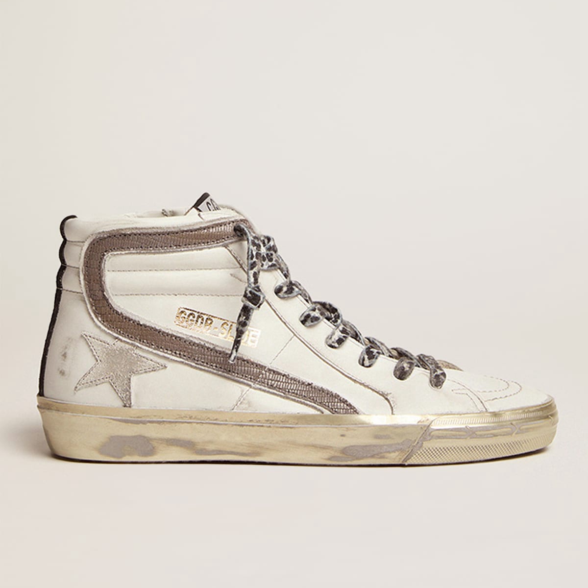 Scarpe Ginnastica a diapositiva d’oca doratura con stella in pelle scamosciata bianca e pelle di lucertola grigio grigio flash GWF00115.f002452.10874