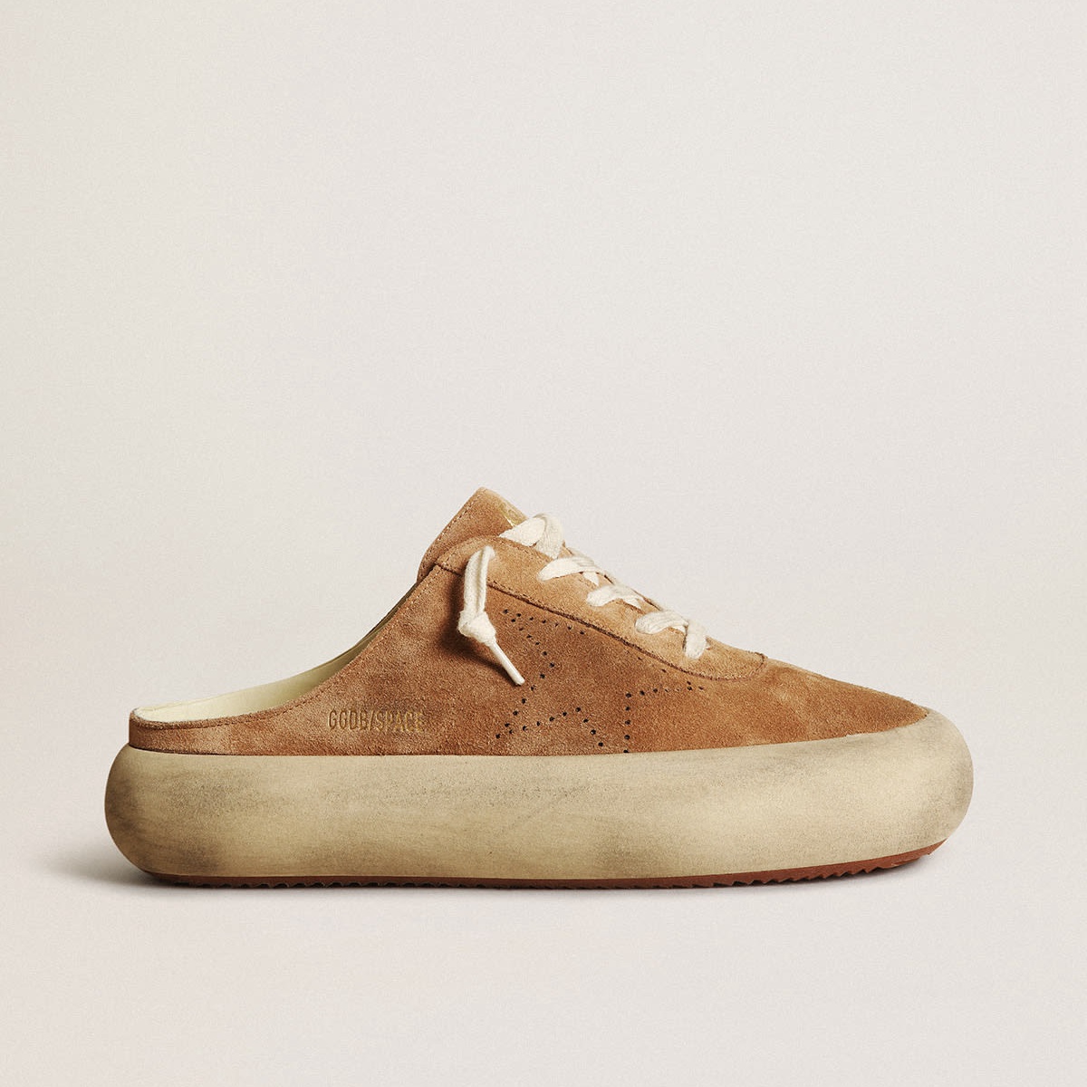 SABOTS SPASE GOLDEN GOOSE in pelle scamosciata color tabacco con stella perforata GWF00382.F003329.55353
