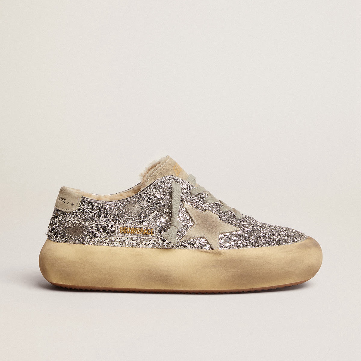 Scarpe da stella spaziale d’oca dorate in glitter d’argento con fodera di shearling GWF00346.F002998.70136