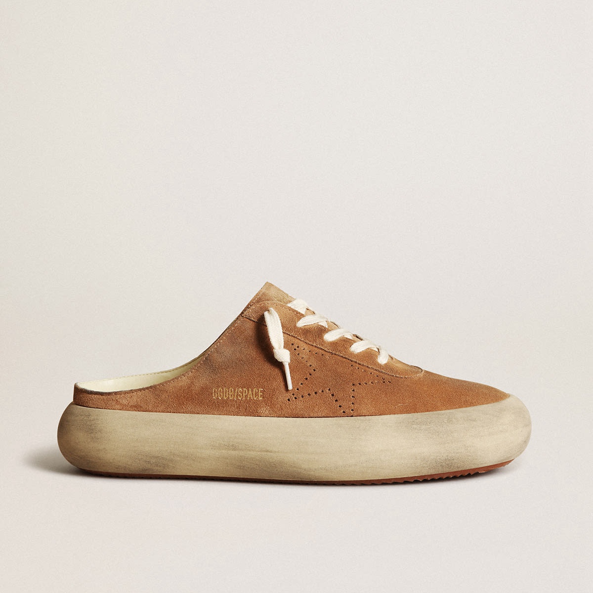 SABOTS SPASE GOLDEN GOOSE in pelle scamosciata del tabacco con stella perforata GMF00382.F003329.55353