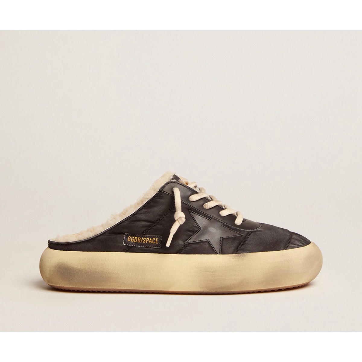 Scarpe sabot-star dello spazio d’oca dorate in nylon nero trapuntato con fodera shearling GMF00349.F003002.90100