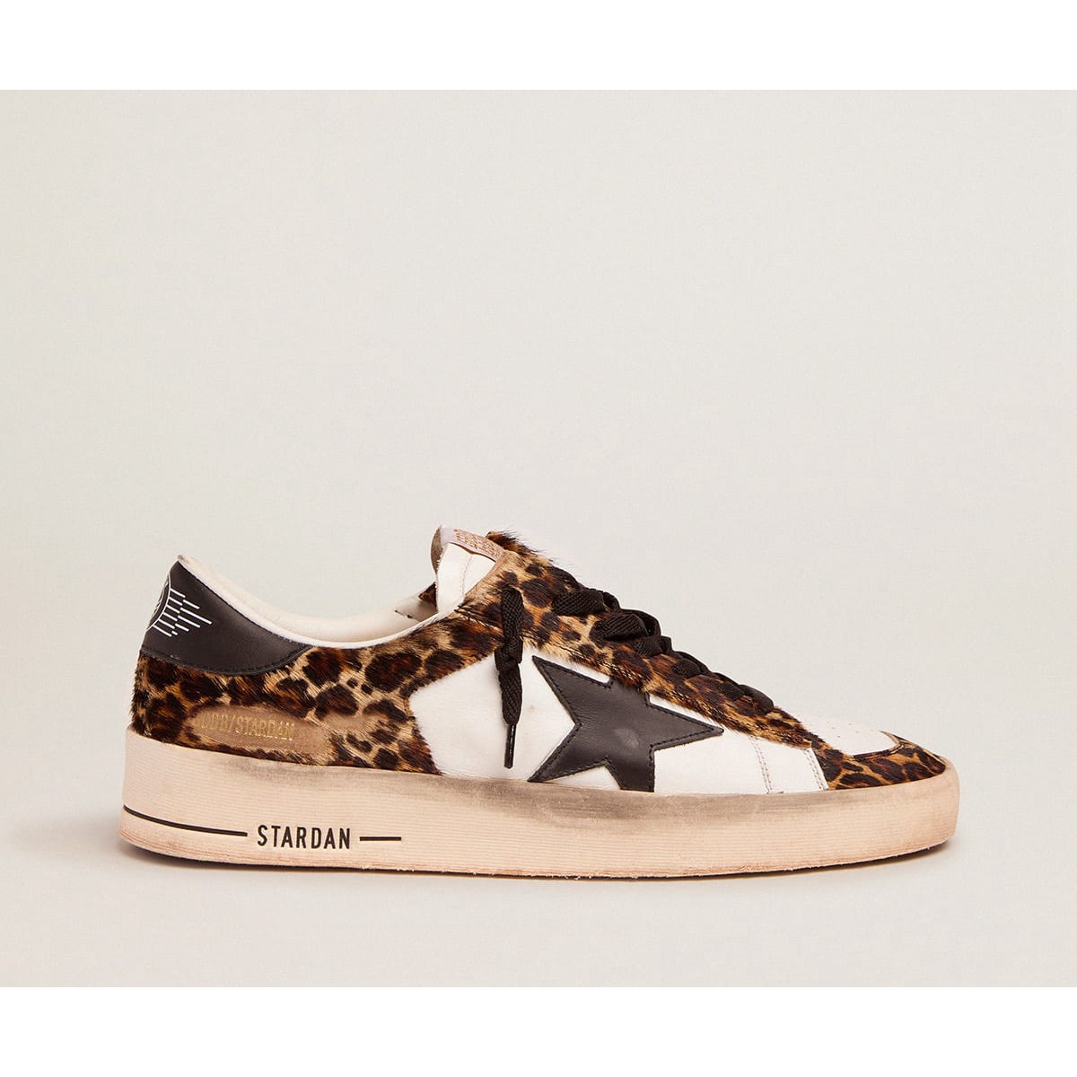 Laboratorio di Scarpe Ginnastica stardan d’oca doratura con tomaia in pelle e star della pelle di pony con stampa leopardata GWF00128.F002364.81428
