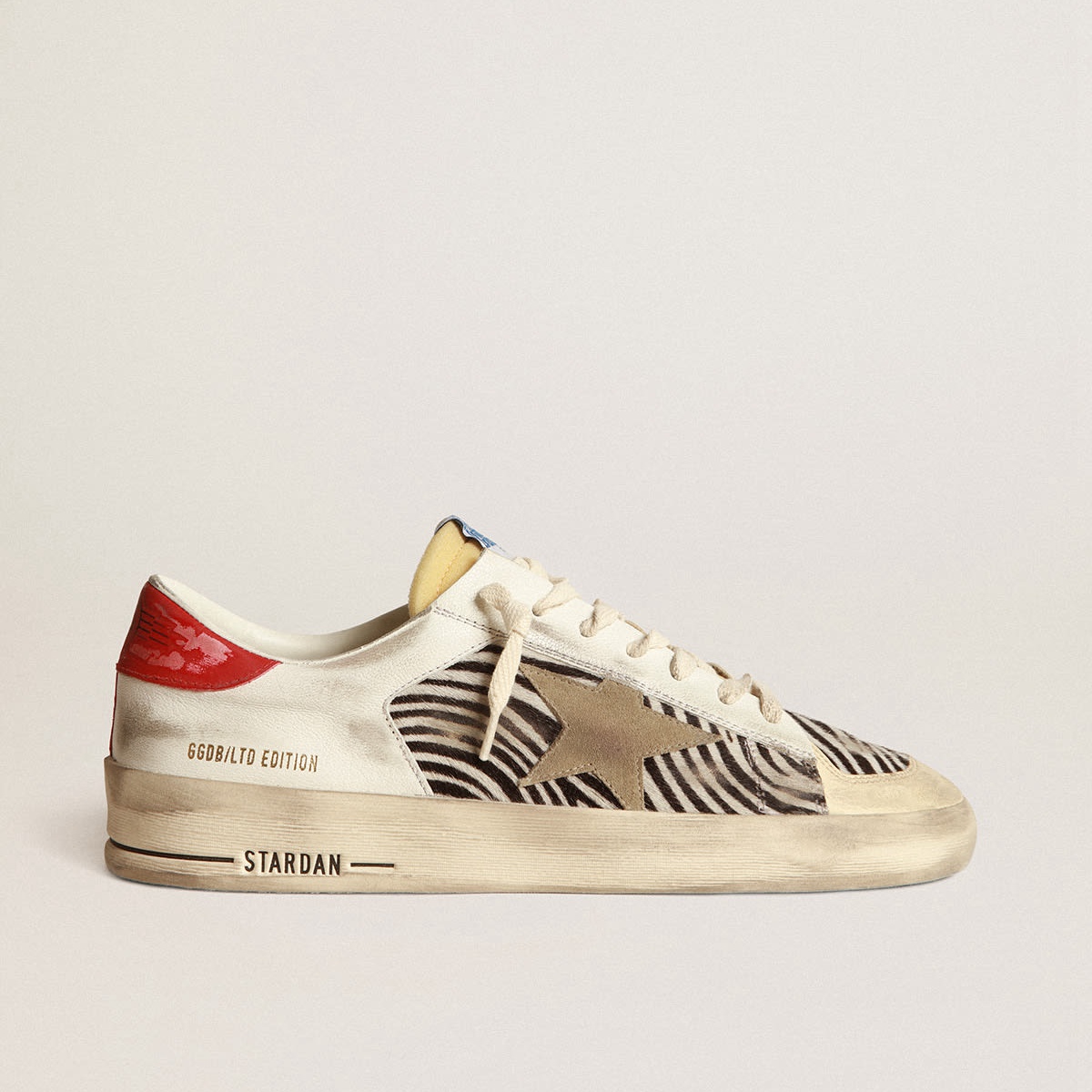 Scarpe Ginnastica di stardan d’oca dorate in pelle rossa e bianca GMF00128.F002186.10350