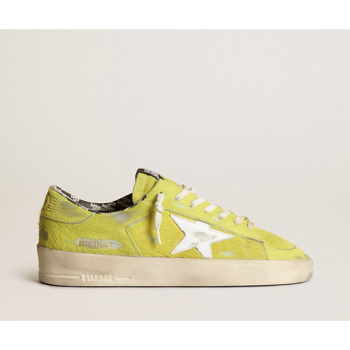 Scarpe Ginnastica di stardan d’oca dorate in pelle di cavallo giallo fluorescente con stella bianca GMF00128.F003440.20310