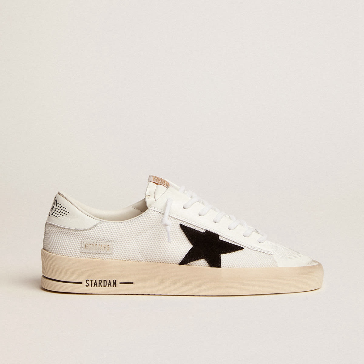 Scarpe Ginnastica di stardan d’oca doratura in mesh bianco con stella in pelle scamosciata nera e tavolo in pelle bianca GMF00328.F003028.10283