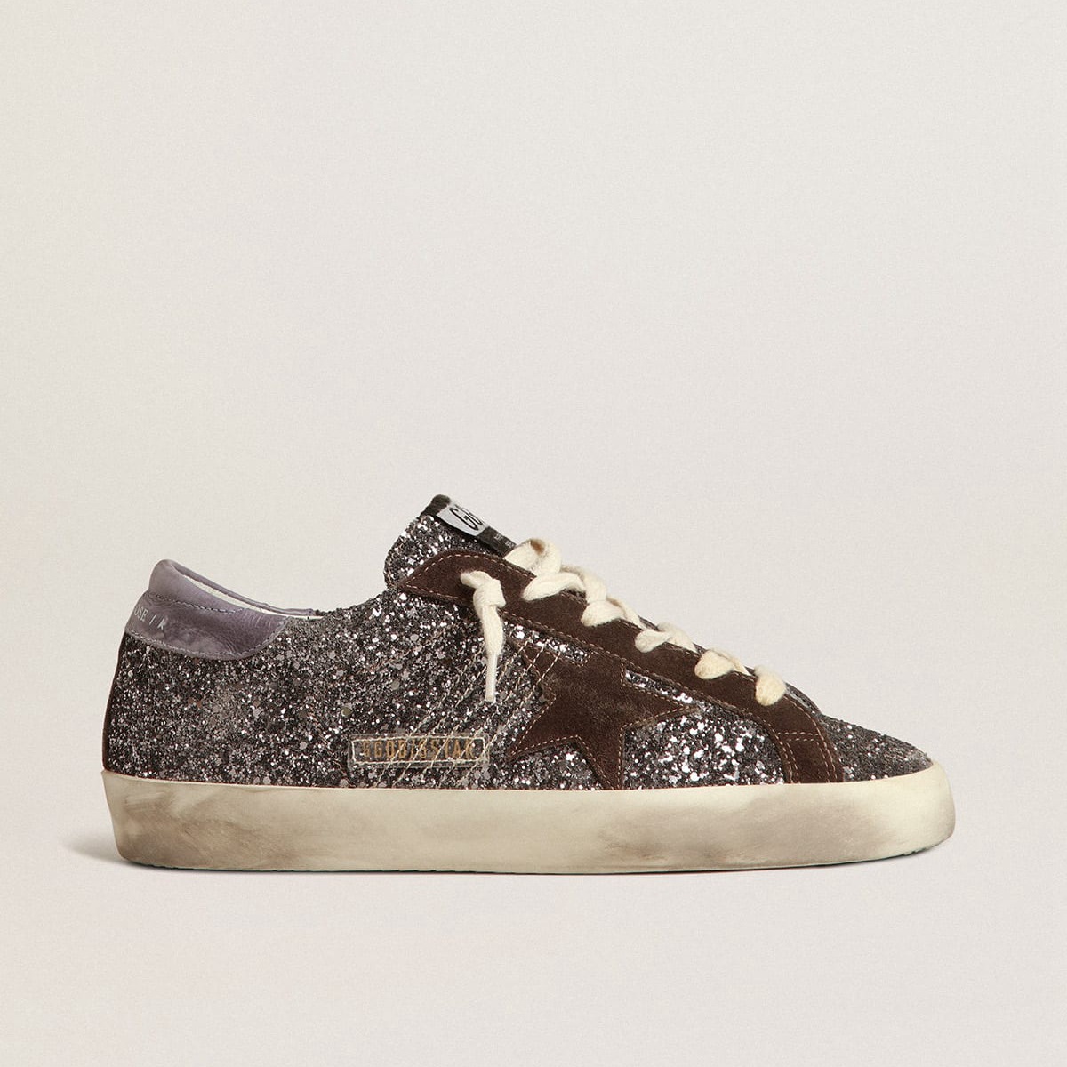 Golden Goose Super-Star in glitter con una stella marrone e tavola del tallone lilla GWF00101.F003986.60394