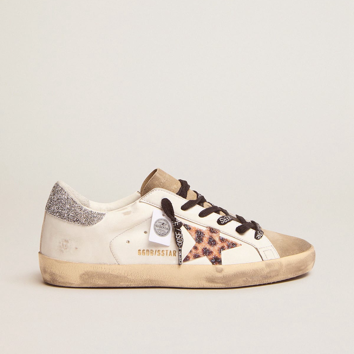 Scarpe Ginnastica super-star dell’oca dorata con stella cristallina con stampa leoparda e tacco cristallino color argento GWF00101.F002715.81580