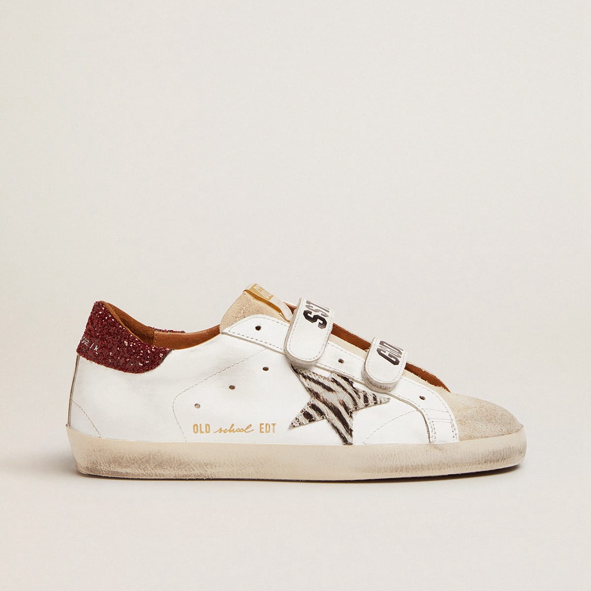 Scarpe Ginnastica della vecchia scuola d’oca dorata con stella della pelle di pony con stampa zebra e tavolo degli glitter rossi gwf00111.f002153.10798