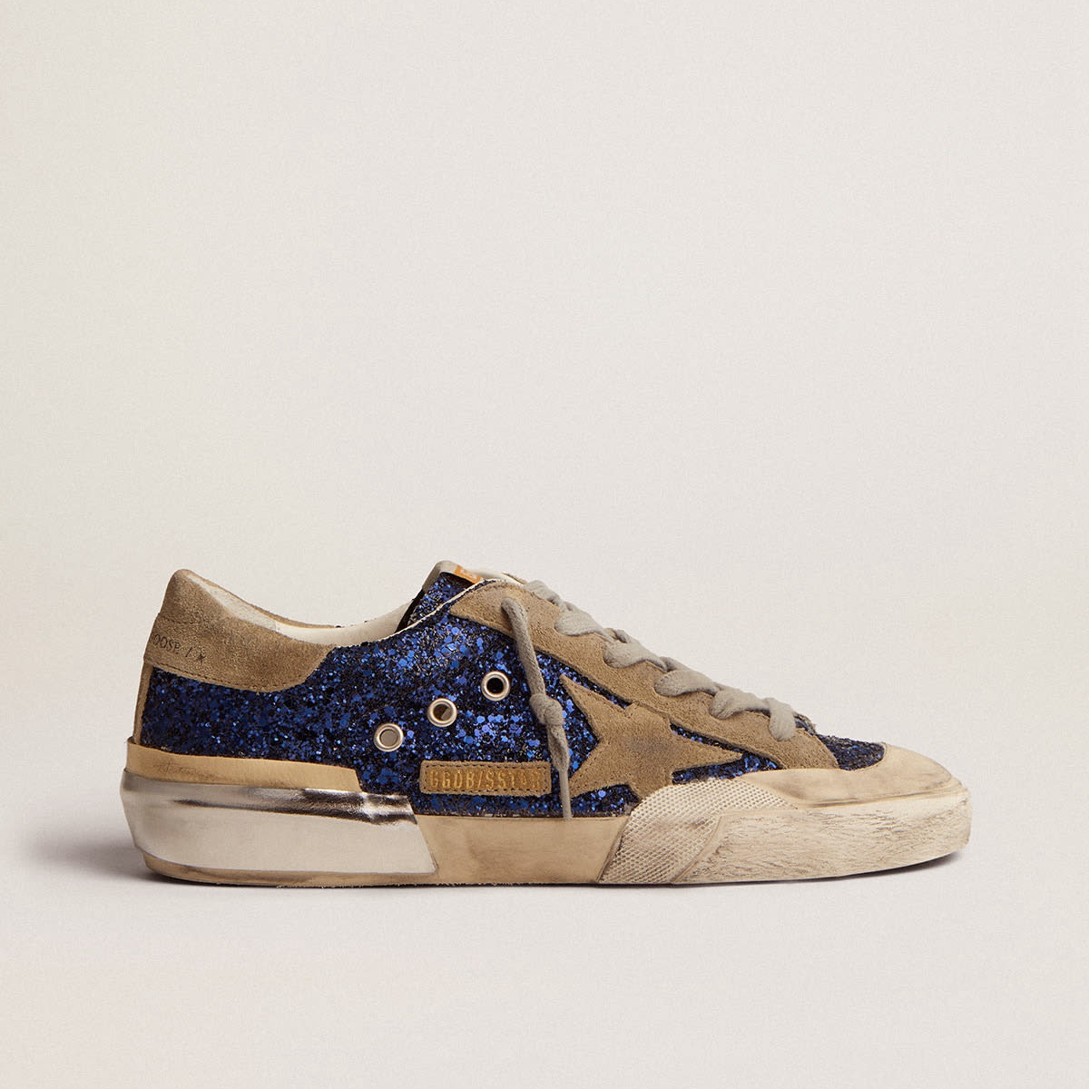 Scarpe Ginnastica super-star dell’oca dorata in glitter blu con stella in pelle scamosciata grigio-grigio GWF00107.F002741.81593