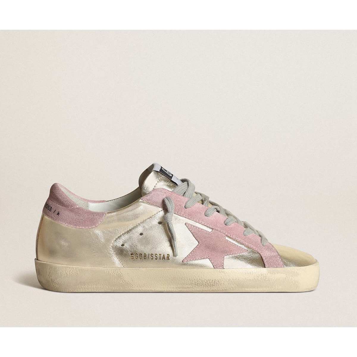 Golden Goose Super-Star Scarpe Ginnastica Ltd in pelle laminata in platino e stella rosa GWF00101.F003360.65170
