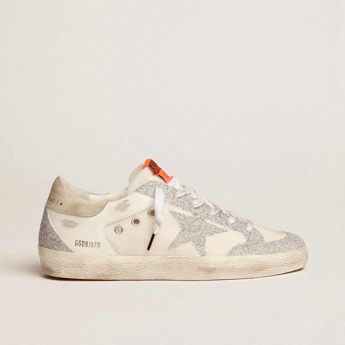Golden Goose Super-Star Ltd in pelle bianca e mesh con stelle e inserti in micro-cristalli Swarovski d’argento GWF00102.F003017.10268