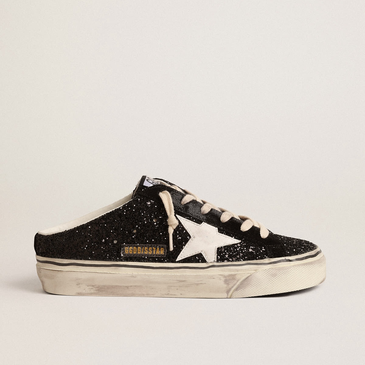 Sabot Golden Goose Super-Star in Black Glitter con stella bianca a base biologica GWF00485.F004546.80203