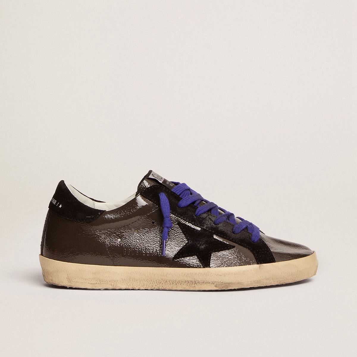 Scarpe Ginnastica super-star d’Ogra d’oro in pelle di brevetto grigio con inserti in pelle scamosciata nera GWF00101.F002689.60336
