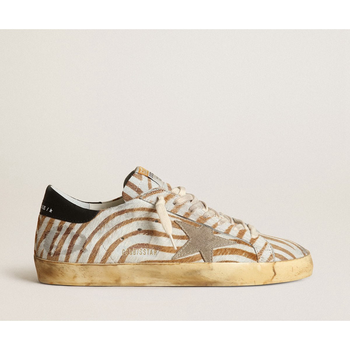 Scarpe Ginnastica super-star d’oca dorate in pelle di cavallo con stampa zebra con stella grigia colomba GMF00101.F003412.81823