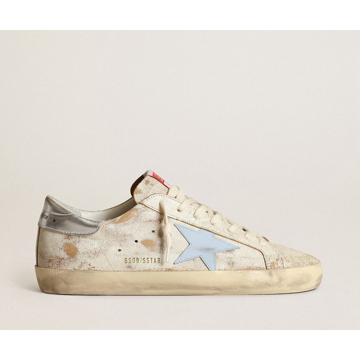 Scarpe Ginnastica super-star dell’oca dorata con stella in pelle fumosa in pelle chiara e tacco d’argento GMF00101.F003362.11233