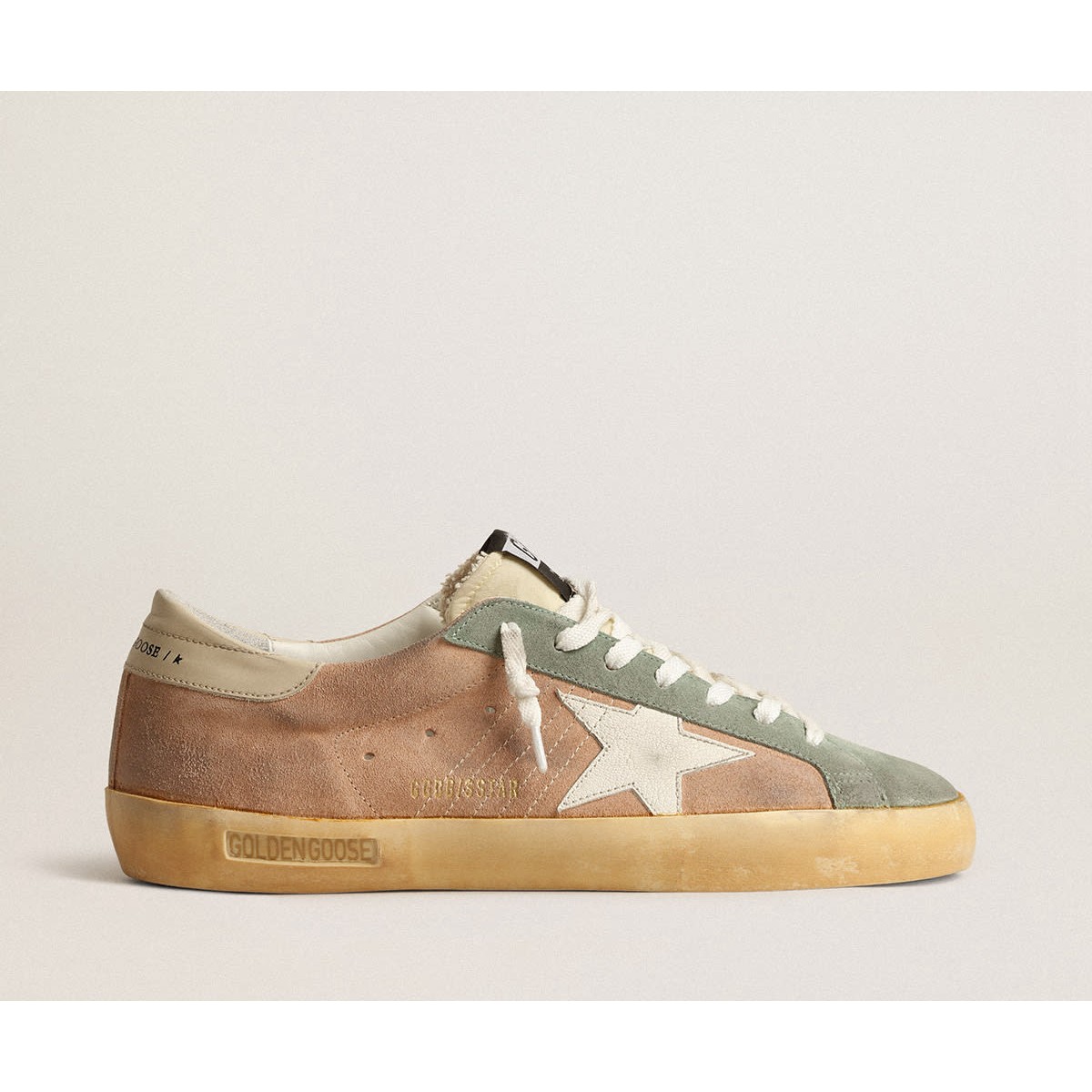 Golden Goose Super-star in pelle scamosciata marrone e verde con stella bianca in pelle nappa GMF00101.F004028.82123