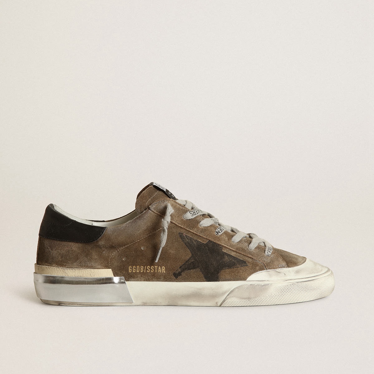 Golden Goose Super-Star in pelle scamosciata verde militare con stella stampata a schermo GMF00399.F003422.35800