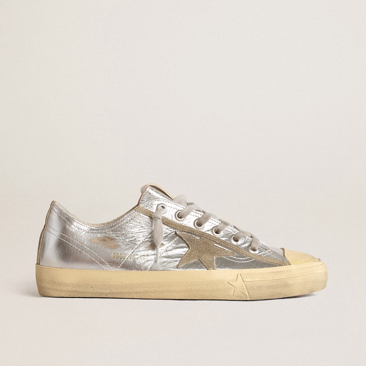 Scarpe Ginnastica Golden Goose V-Star Ltd in pelle metallica d’argento con stella in pelle scamosciata grigio ghiaccio GMF00129.F003091.70136