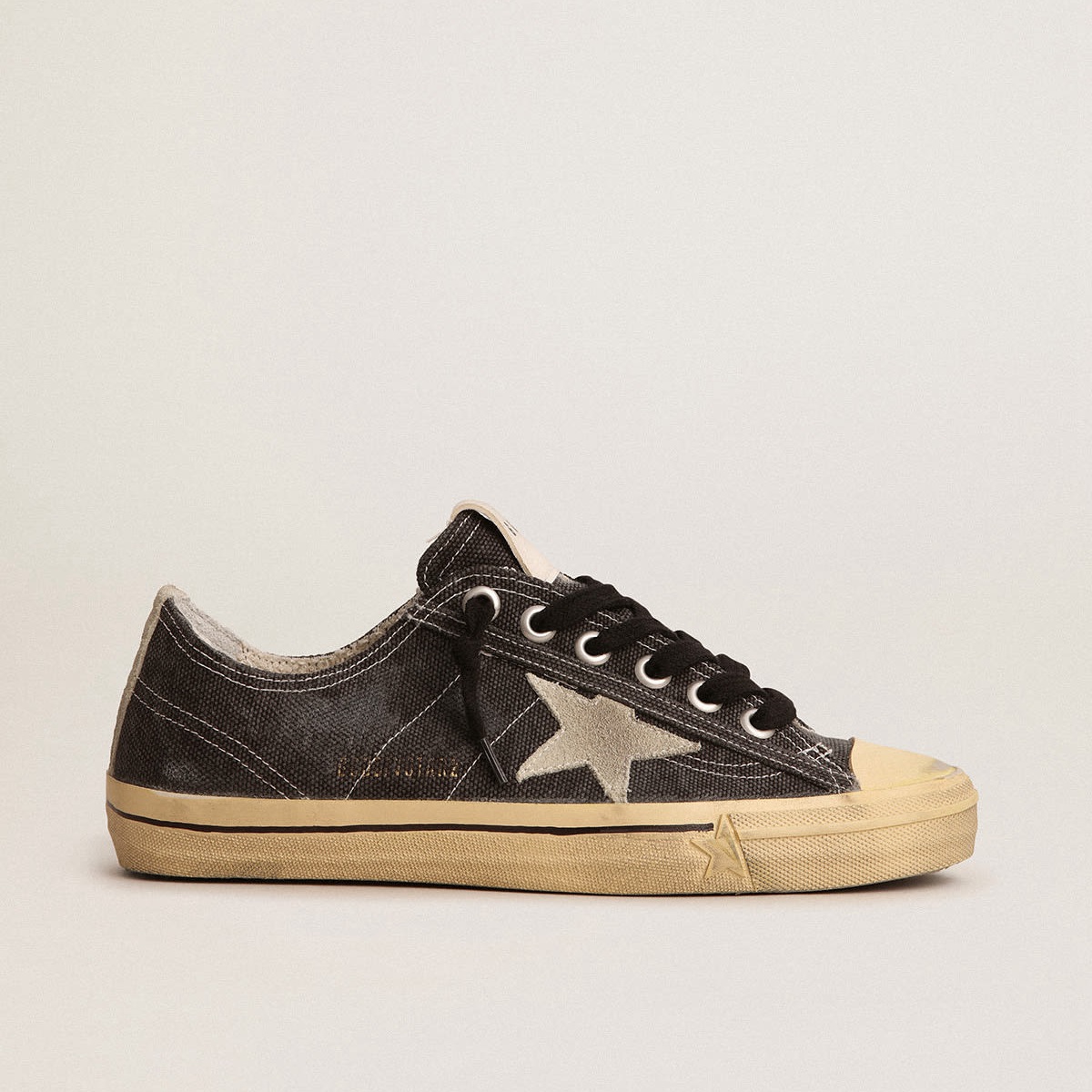 Golden Goose V-Star Ltd Scarpe Ginnastica in tela nera con stella in pelle scamosciata grigio ghiaccio e tab tab GMF00129.f003088.90184
