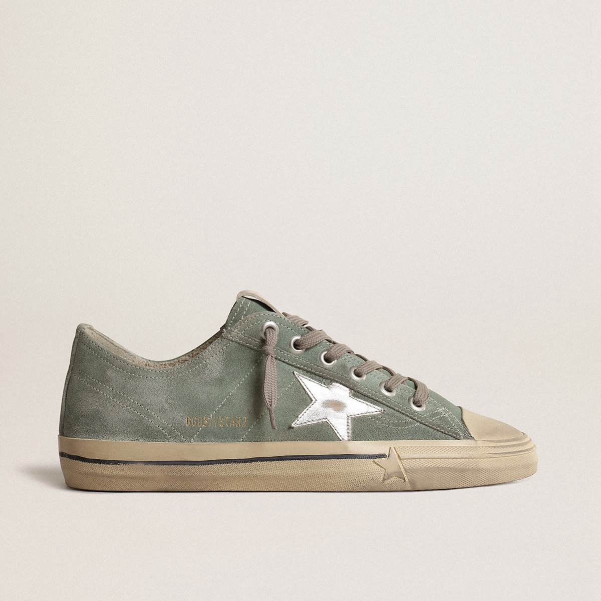 Golden Goose V-Star in pelle scamosciata verde militare con una stella in pelle laminata GMF00129.F004024.35835