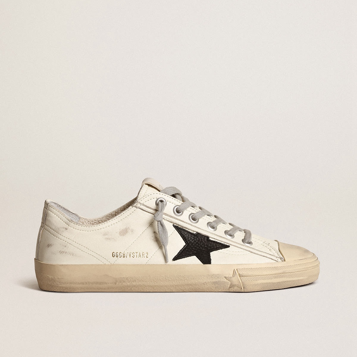 Scarpe Ginnastica a V-Star d’Ora doratura in pelle nappa off-bianca con stella nera GMF00129.f003996.11360