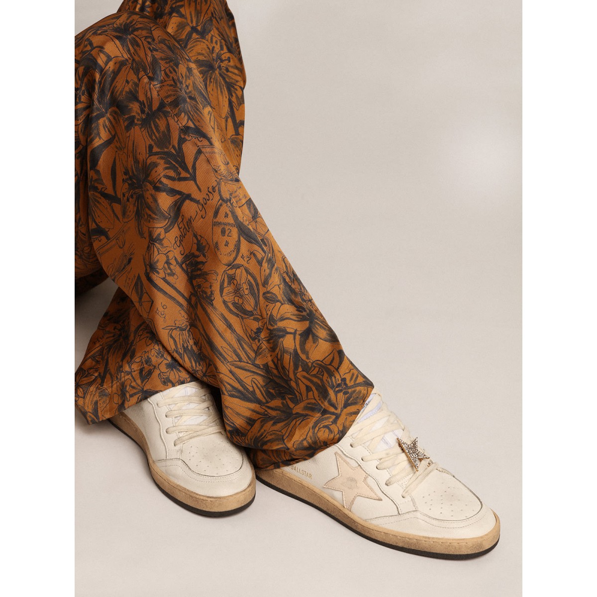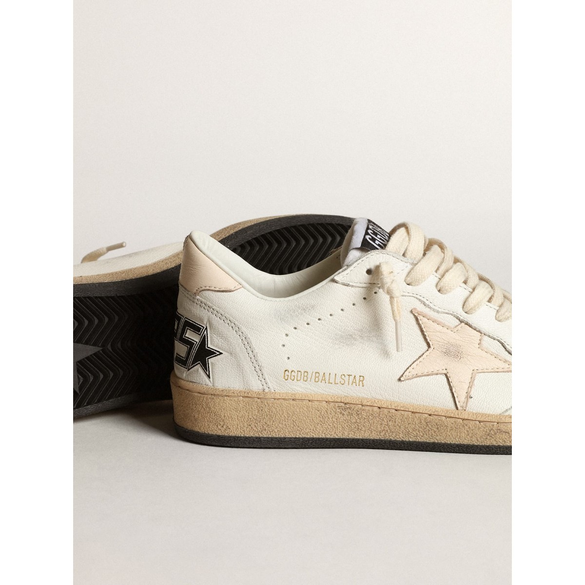 Sognando gli anni Ottanta. Le nostre Scarpe Ginnastica a stella della palla hanno un’atmosfera universitaria americana catturata tra un tiro a cerchio e un giro di skateboard. Con la sua tomaia in pelle nappa bianca, questa versione presenta una stella in pelle Nappa e tallone di salmone. I lacci della crema aggiungono il tocco finale: cose belle che non passano mai di moda.