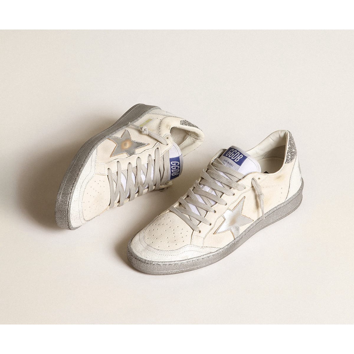 Golden Goose Ball Star Scarpe Ginnastica Ltd con tavola di tallone glitter d’argento e Silver Star GWF00117.F002782.80185