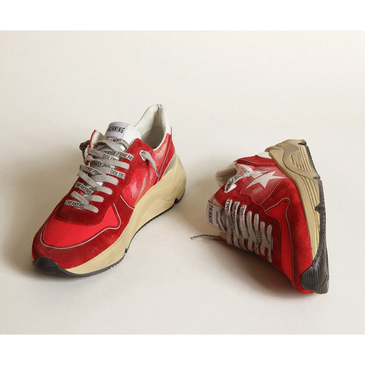 Golden Goose che corre Scarpe Ginnastica in pelle rossa con inserti in pelle scamosciata rossa e stella bianca stampata a schermo GMF00367.F003254.40388