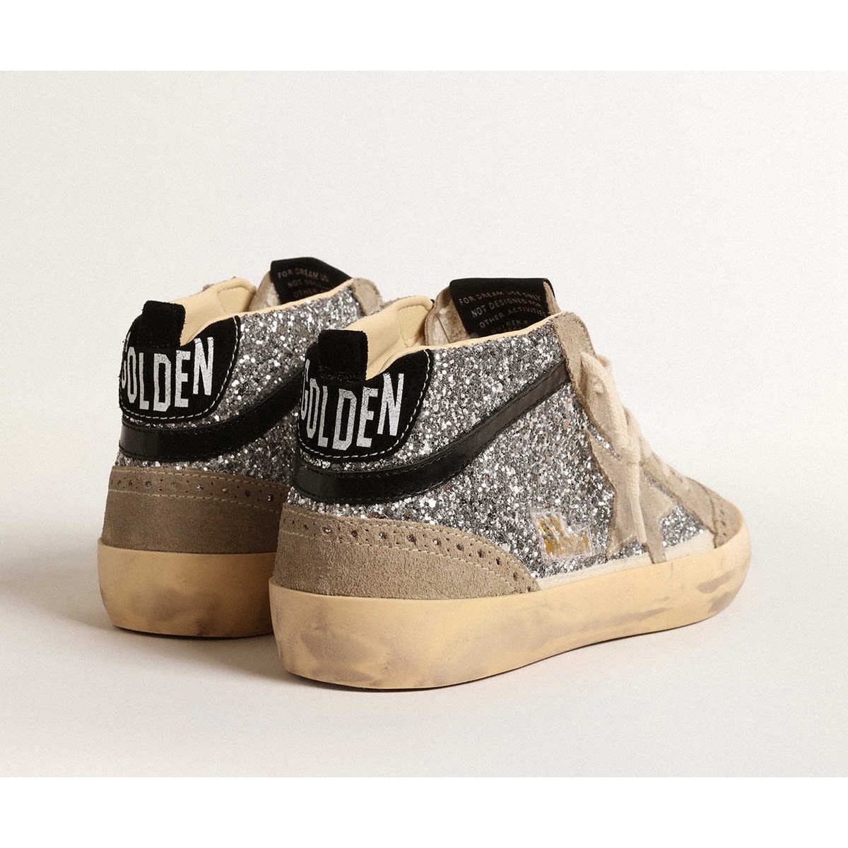 La stella centrale delle donne d’Ora d’Ora in argento glitter con star in pelle scamosciata e Black Flash