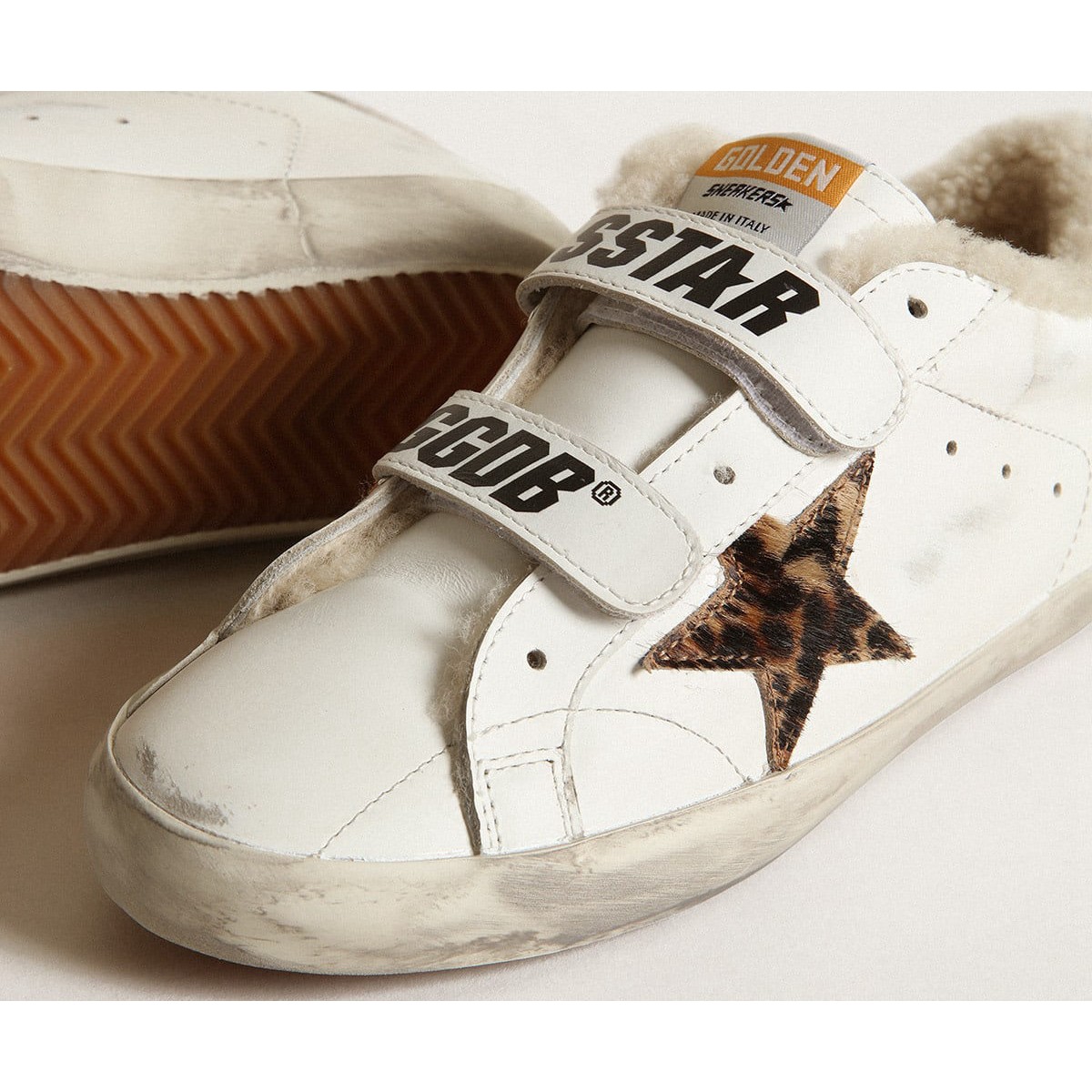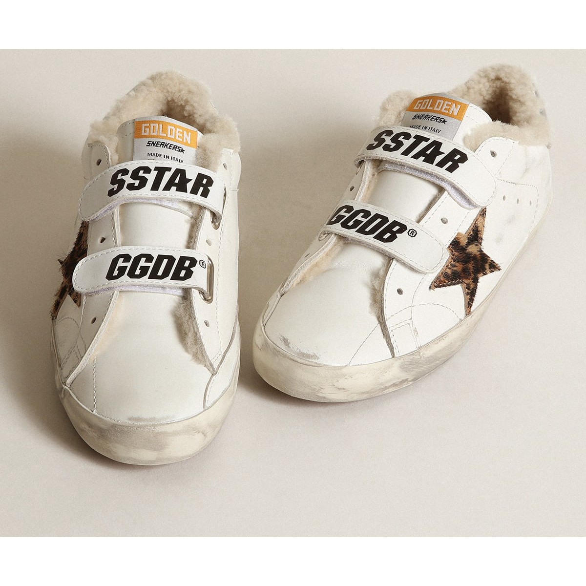Golden Goose Old School con leopardo Skin Star e BEIGE Shearling Lining GWF00111.F003348.11227