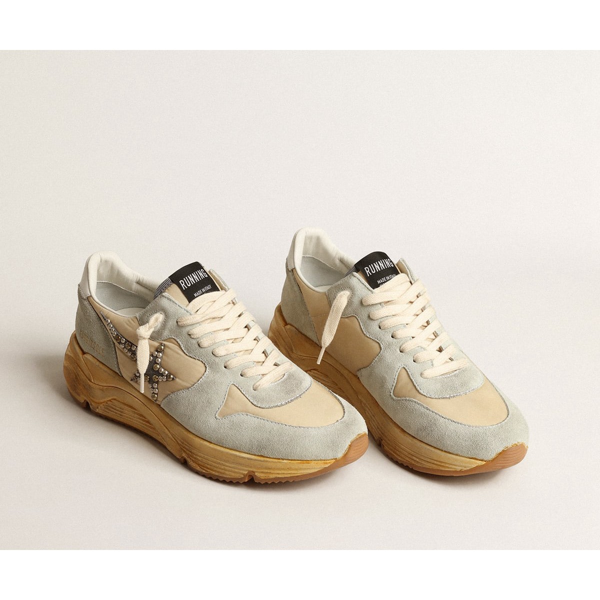 Golden Goose Running Scarpe Ginnastica Sole in grigio ghiaccio con stella in pelle scamosciata con borchie GMF00126.F004008.82102