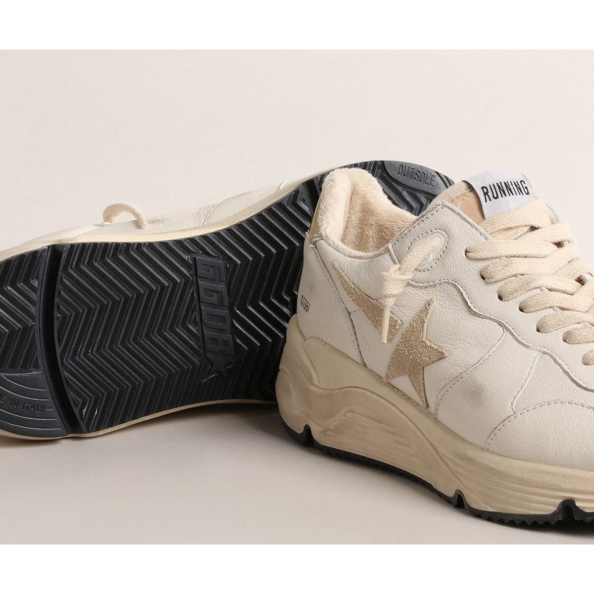 Recensisci per primo “Golden Goose Running Scarpe Ginnastica Sole Ltd a Nappa con stella in pelle scamosciata e tab tacco d’oro GWF00215.F004594.81413”