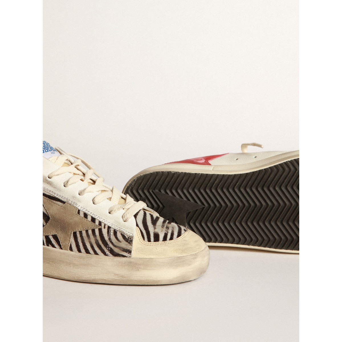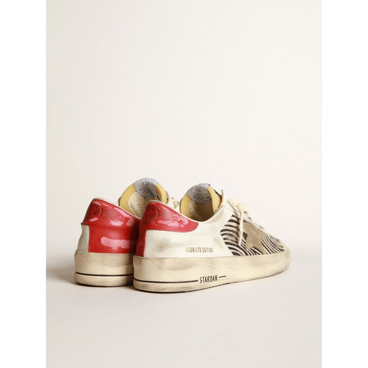I gloriosi novanta si sono avvolti in una Scarpe Ginnastica. Le Scarpe Ginnastica Stardan rendono omaggio alle icone di basket di quel decennio, tenendo d’occhio il presente. Queste Scarpe Ginnastica da laboratorio maschile in edizione limitata presentano una pelle di pony con stampa zebra e tomaia in pelle bianca con una stella in pelle scamosciata grigio ghiacciata e una linguetta in pelle rossa. E lacci color crema aggiungono il tocco finale.