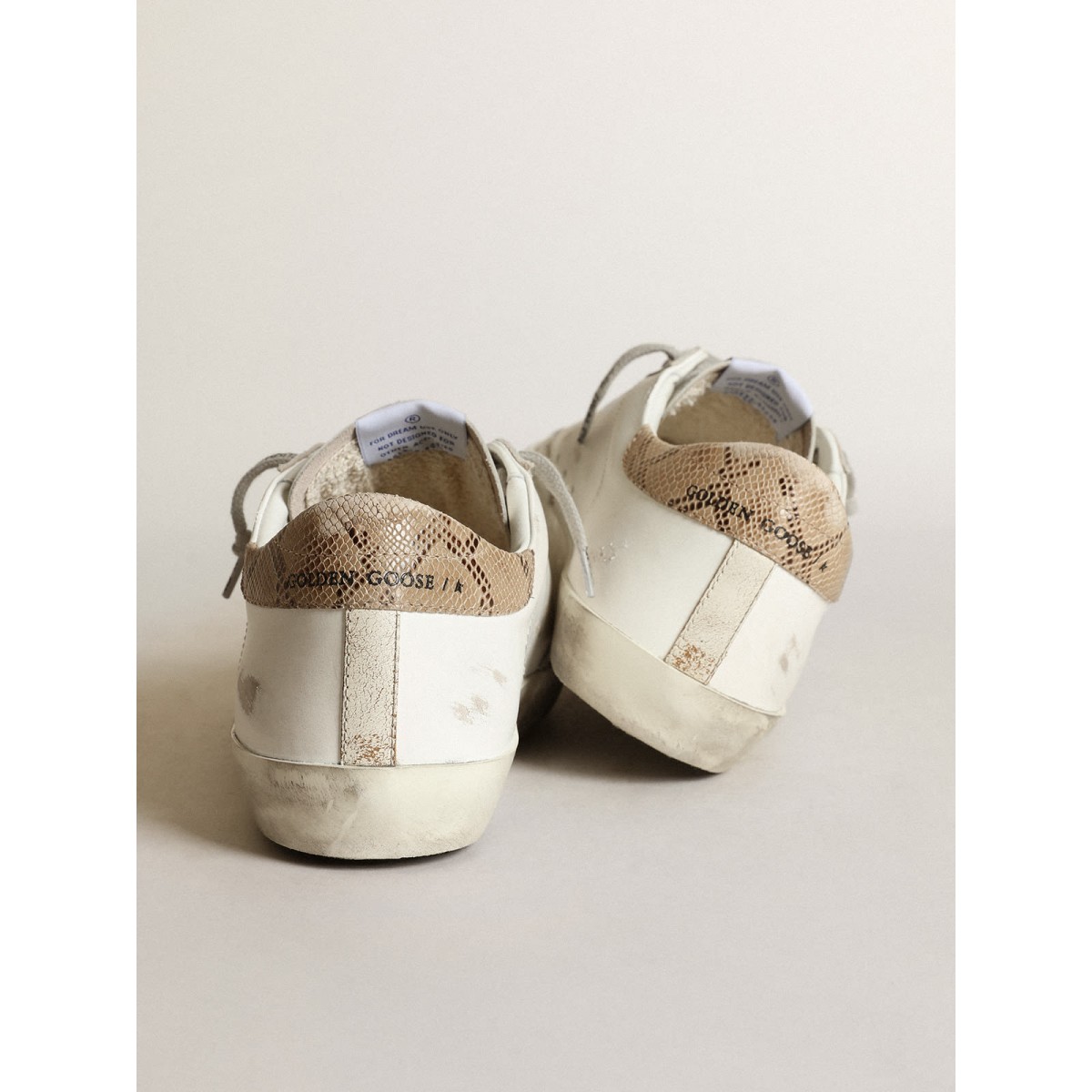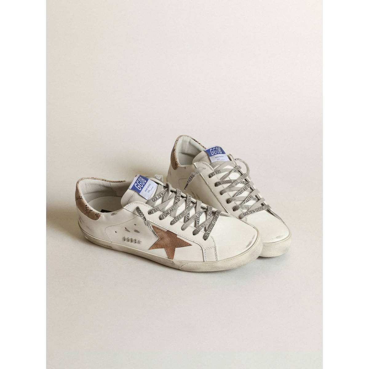 Un’icona senza tempo eppure è in continua evoluzione. A Golden, adoriamo prendere i nostri classici e rielaborarli sempre, sempre da una nuova prospettiva. Questo modello con una tomaia in pelle bianca presenta una stella in pelle scamosciata del tabacco e una linguetta di tallone per serpenti in pelle beige. I lacci grigio ghiaccio con logo nero contrastante aggiungono il tocco finale.