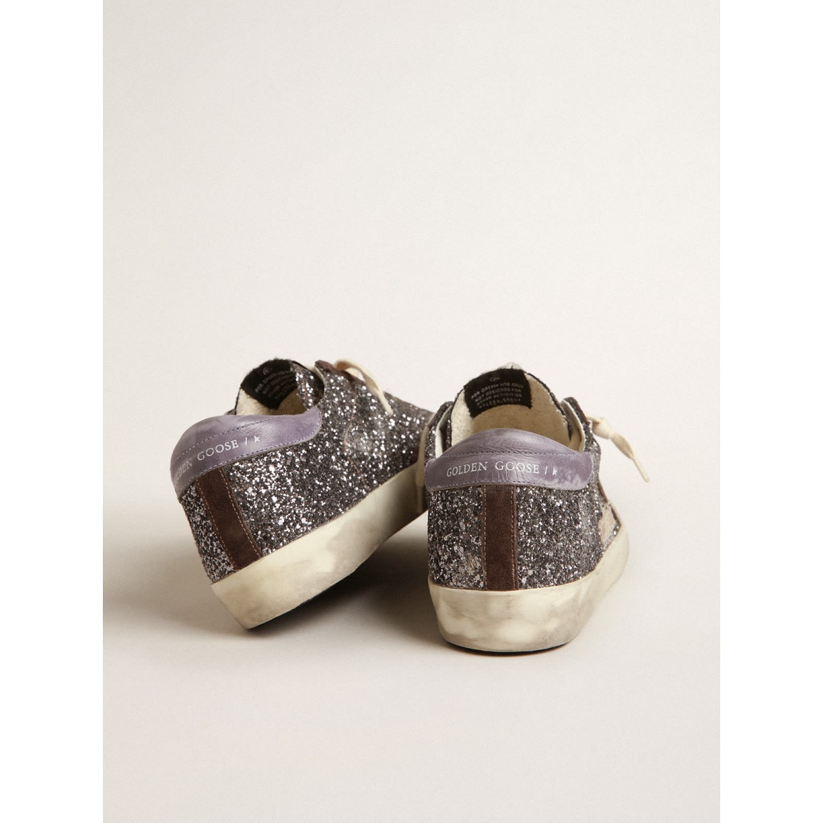 Un’icona senza tempo eppure è in continua evoluzione. A Golden, adoriamo prendere i nostri classici e rielaborarli sempre, sempre da una nuova prospettiva. Queste scarpe da ginnastica super star con una tomaia glitter antracite leggera presentano una stella in pelle marrone e una linguetta in pelle lilla. Gli inserti in pelle scamosciata marrone e i lacci color crema aggiungono il tocco finale.